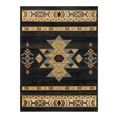 TopComfy Rugs Southwest Pattern Area Rug with Traditional Motifs Modern Contemporary Flair Easy Care for Living Room, Black, 87"*63"*0.39"