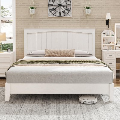 AMERLIFE Solid Wood Bed Frame, Mid Century Platform Bed with Arched Lines Headboard