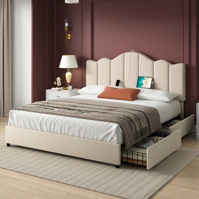 - queen size bed frame with charging station