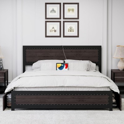 - queen size bed frame with charging station