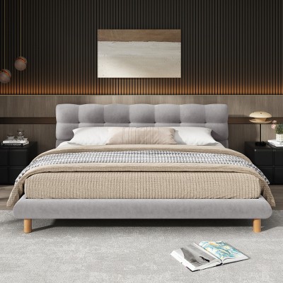 GDFStudio Browne Modern Teddy Fleece Upholstered Queen Size Platform Bed
