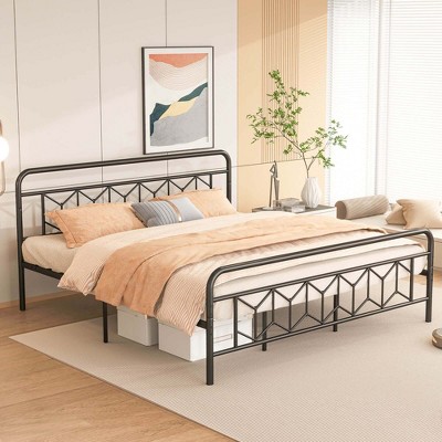 Yaheetech Iron Platform Bed Frame with High Headboard and Footboard