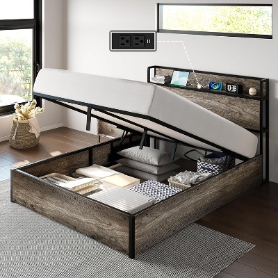 AMERLIFE Lift Up Storage Bed Frame with Lifting Storage & Charging Station