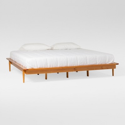 Canopy Bed Wood 4 Poster Panel Beds, Floor Bed Frame with Solid Wood Slat Support