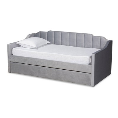 GDFStudio Nelson Full Size Teddy Fleece Upholstered Daybed with LED Light and Twin Trundle