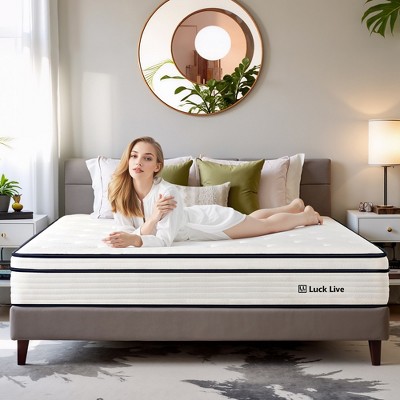 Luck Live 10-inch mattress Full size foam and pocket coil springs, pressure relief, medium firmness comfort, CertiPUR-US certified