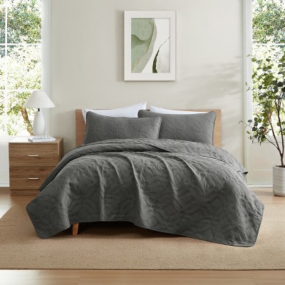 6pc Harmony Jacquard Reversible Quilt Set Gray/Taupe - Madison Park