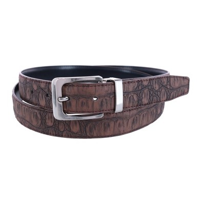 CTM Leather Matte Reversible Croc Print Clamp on Buckle Belt