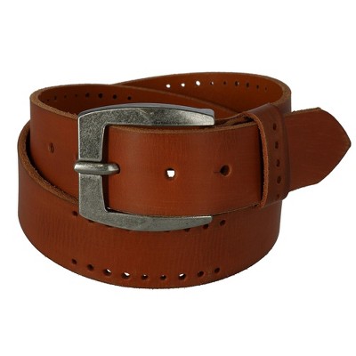 CTM Men's Distressed Leather Bridle Belt with Perforations
