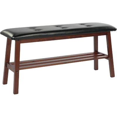 - christopher knight home joa patio dining bench, acacia wood with iron legs, modern, contemporary, teak finish, black