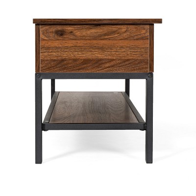 - christopher knight home joa patio dining bench, acacia wood with iron legs, modern, contemporary, teak finish, black