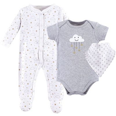 Minimize mealtime mess with baby bibs and burp cloths. Keep your little one clean and protected from messes and spills with organic cotton and muslin baby bibs. At Target, find a range of ultra-soft, super-absorbent organic cotton baby bibs, burp cloths, burp rags, teethers, washcloths, pacifiers, and more. Protect your baby’s outfit with cozy comfort and lightweight designs with closures to keep the bib in place while your baby is super-active. Cloud Island’s adorable cotton bibs and burp cloths bring convenience to feeding routines. Honest Baby’s organic bandana bibs and organic burp cloths are a must-have essential and go from bib to burp cloth in a snap. KeaBabies organic baby bandana drool bibs are soft and stylish and are perfect for baby boys and baby girls. With polyester fleece on the front layer, the bibs offer maximum absorption and come with adjustable snaps to grow with your little one. Bumkins’ cotton sleeved bibs are lightweight, easy-to-wipe, machine-washable, and waterproof for hassle-free feeding and come with an adjustable tie closure to fit toddlers and newborn babies. Hudson Baby drooler bibs are filled with fiber to absorb drool and spills without staining your baby’s cute outfits. Green Sprouts stay-dry infant bibs provide drool and spit-up protection. Little Treasure silicone bibs are waterproof and come with deep pockets to catch crumbs, spills, drips, and leaks. Go on the Target baby registry to find a ton of gifts for expectant moms or put together an adorable baby hamper for a baby shower.