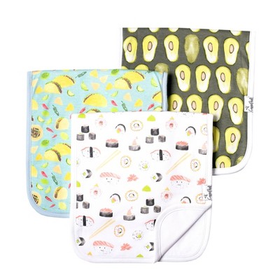 Minimize mealtime mess with baby bibs and burp cloths. Keep your little one clean and protected from messes and spills with organic cotton and muslin baby bibs. At Target, find a range of ultra-soft, super-absorbent organic cotton baby bibs, burp cloths, burp rags, teethers, washcloths, pacifiers, and more. Protect your baby’s outfit with cozy comfort and lightweight designs with closures to keep the bib in place while your baby is super-active. Cloud Island’s adorable cotton bibs and burp cloths bring convenience to feeding routines. Honest Baby’s organic bandana bibs and organic burp cloths are a must-have essential and go from bib to burp cloth in a snap. KeaBabies organic baby bandana drool bibs are soft and stylish and are perfect for baby boys and baby girls. With polyester fleece on the front layer, the bibs offer maximum absorption and come with adjustable snaps to grow with your little one. Bumkins’ cotton sleeved bibs are lightweight, easy-to-wipe, machine-washable, and waterproof for hassle-free feeding and come with an adjustable tie closure to fit toddlers and newborn babies. Hudson Baby drooler bibs are filled with fiber to absorb drool and spills without staining your baby’s cute outfits. Green Sprouts stay-dry infant bibs provide drool and spit-up protection. Little Treasure silicone bibs are waterproof and come with deep pockets to catch crumbs, spills, drips, and leaks. Go on the Target baby registry to find a ton of gifts for expectant moms or put together an adorable baby hamper for a baby shower.