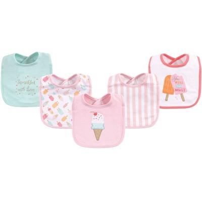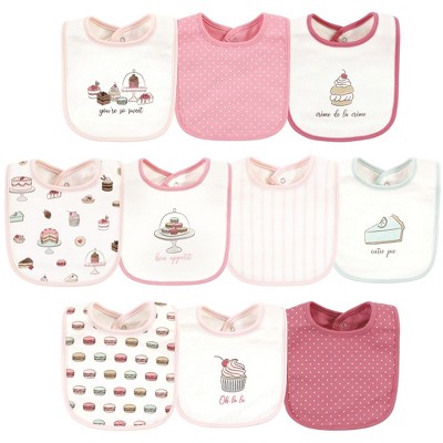 Minimize mealtime mess with baby bibs and burp cloths. Keep your little one clean and protected from messes and spills with organic cotton and muslin baby bibs. At Target, find a range of ultra-soft, super-absorbent organic cotton baby bibs, burp cloths, burp rags, teethers, washcloths, pacifiers, and more. Protect your baby’s outfit with cozy comfort and lightweight designs with closures to keep the bib in place while your baby is super-active. Cloud Island’s adorable cotton bibs and burp cloths bring convenience to feeding routines. Honest Baby’s organic bandana bibs and organic burp cloths are a must-have essential and go from bib to burp cloth in a snap. KeaBabies organic baby bandana drool bibs are soft and stylish and are perfect for baby boys and baby girls. With polyester fleece on the front layer, the bibs offer maximum absorption and come with adjustable snaps to grow with your little one. Bumkins’ cotton sleeved bibs are lightweight, easy-to-wipe, machine-washable, and waterproof for hassle-free feeding and come with an adjustable tie closure to fit toddlers and newborn babies. Hudson Baby drooler bibs are filled with fiber to absorb drool and spills without staining your baby’s cute outfits. Green Sprouts stay-dry infant bibs provide drool and spit-up protection. Little Treasure silicone bibs are waterproof and come with deep pockets to catch crumbs, spills, drips, and leaks. Go on the Target baby registry to find a ton of gifts for expectant moms or put together an adorable baby hamper for a baby shower.