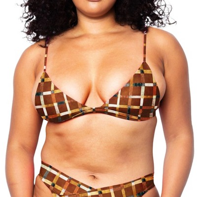 A triangle bikini top offers a minimal, adjustable design that’s flattering on many body types. It’s perfect for tanning and gives a classic, beach-ready look.