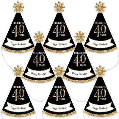 Big Dot of Happiness Adult 40th Birthday - Gold - Mini Cone Birthday Party Hats - Small Little Party Hats - Set of 8