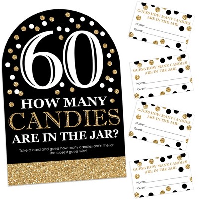 Big Dot of Happiness Adult 60th Birthday - Gold - How Many Candies Birthday Party Game - 1 Stand and 40 Cards - Candy Guessing Game