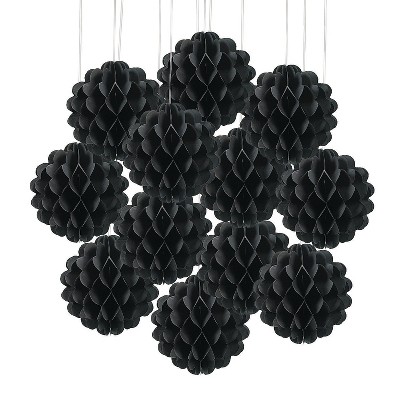 Fun Express 8" Black Hanging Honeycomb Tissue Paper Balls - 12 Pc.