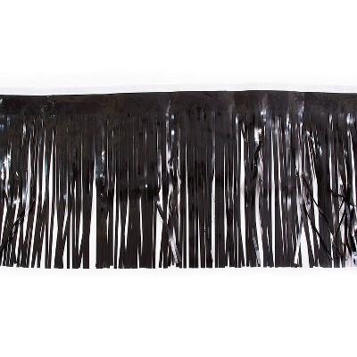 9 ft. x 29" Black Metallic Fringe Plastic Table Skirt