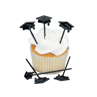 Fun Express 3" Bulk 72 Pc. Graduation Cap Black Plastic Food Picks