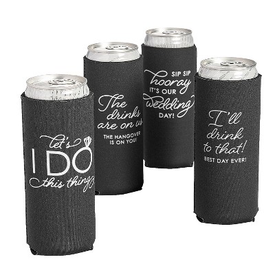 Fun Express Premium Wedding Sayings Slim Fit Can Coolers - 12 Pc.