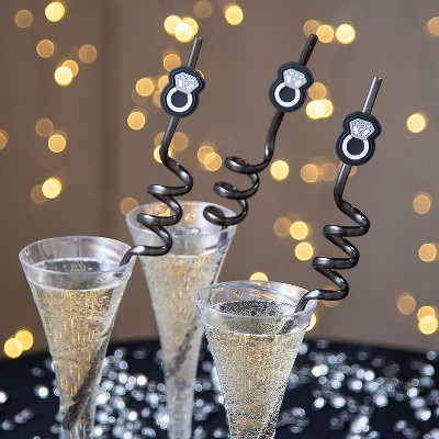 Diamond Ring Black Silly Straws - 12 Pc.