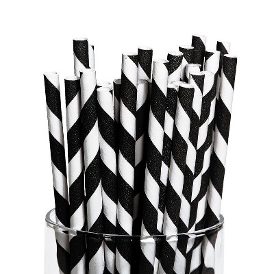 Black Striped Paper Straws - 24 Pc.