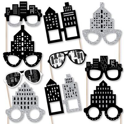 Big Dot of Happiness Nighttime City Skyline Glasses - Paper Card Stock New York Party Photo Booth Props Kit - 10 Count