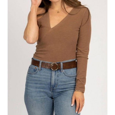 Upgrade your wardrobe with a stylish bodysuit. At Target, find a wide range of bodysuits for women. You can layer a bodysuit under a chunky cardigan or a drapey tee for a classic, clean-cut look, or wear it as an added layer of security with any ensemble — no need to relentlessly tuck in and adjust a camisole throughout your day. Choose from a variety of patterns like swirl, multi-stripe, floral, polka dots and more. Cut to a slim-fit silhouette and made from comfortable fabric with spandex for stretchy comfort, these bodysuits for women are a must-have! Look through brands like Wild Fable, Universal Thread, Auden, A New Day and more. Browse through a range of bodysuits with long sleeves, sleeveless and short sleeves. You can also choose from a variety of necklines like turtleneck, v-neck, high-neck and more. Dressing up for a night out? Pick from racerbacks, backless, mesh, ruched and halter neck bodysuits. Wear it with everything from jeans or maxi skirts to slim-fit or wide-leg pants, and layer it under a sleek blazer or jean jacket for a little more coverage when needed.