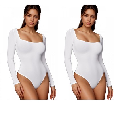 Upgrade your wardrobe with a stylish bodysuit. At Target, find a wide range of bodysuits for women. You can layer a bodysuit under a chunky cardigan or a drapey tee for a classic, clean-cut look, or wear it as an added layer of security with any ensemble — no need to relentlessly tuck in and adjust a camisole throughout your day. Choose from a variety of patterns like swirl, multi-stripe, floral, polka dots and more. Cut to a slim-fit silhouette and made from comfortable fabric with spandex for stretchy comfort, these bodysuits for women are a must-have! Look through brands like Wild Fable, Universal Thread, Auden, A New Day and more. Browse through a range of bodysuits with long sleeves, sleeveless and short sleeves. You can also choose from a variety of necklines like turtleneck, v-neck, high-neck and more. Dressing up for a night out? Pick from racerbacks, backless, mesh, ruched and halter neck bodysuits. Wear it with everything from jeans or maxi skirts to slim-fit or wide-leg pants, and layer it under a sleek blazer or jean jacket for a little more coverage when needed.