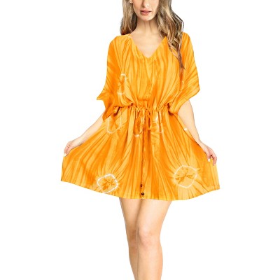 HAPPY BAY Women's House Daily Routine Evening Wear Vacation Casual Dailywear Holiday Relaxed Fit Caftan Short Loungewear 2X-3X Gold, Tie Dye Design