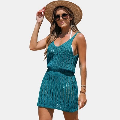 Women's Knit Lace Cover Up Dress - Beach Swimwear Sheer Tunic Midi Dress Boho Chic Sleeveless Summer Dress