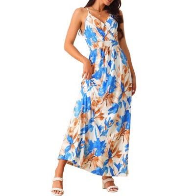 Coolmee Plus Size Women's Boho Floral Print Long Skirt Shirring Pleated Skirts High Waisted A Line Midi Skirts