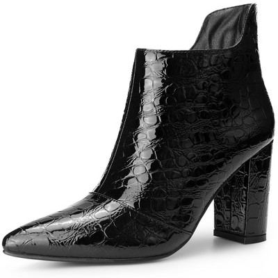 Perphy Women's Pointed Toe Stone Pattern Cutout Block Heels Ankle Booties