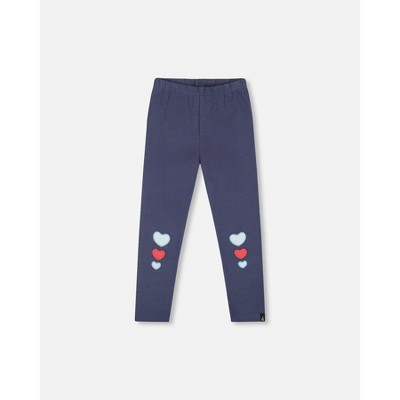 Deux par Deux Girl Organic Cotton Leggings Navy Blue with Hearts