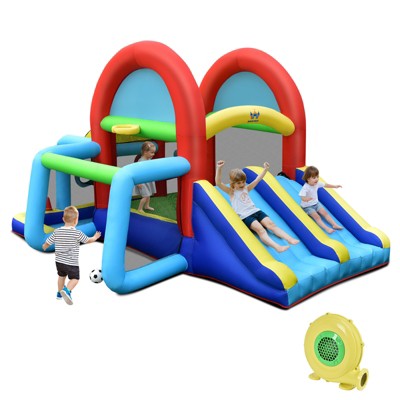 Bounce houses are always a hit with the kids. Whether you’re throwing a birthday party for your little ones or want to organize a fun summer activity for them, these inflatables are sure to give them a pleasant surprise. At Target, find a wide range of bounce houses of different designs. Looking for the perfect bounce house can be a challenge. First, you need to consider how many kids will be using it, how old they are and how much space will be required. Make sure there is enough height clearance with no tree branches or wires hanging. You can go for a basic bouncer or go for the ones that have slides or water slides with attached tiny pools. There are different types of bounce houses like a castle, a house with basketball hoops and more. As these are breathable, make sure the blower is constantly connected and has a power backup. Browse through our store and find the perfect inflatable bounce house where your kiddo and their friends can bounce, jump and have unlimited fun.
