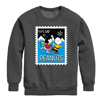 Boys' - Peanuts - Lucy Charlie Winter Stamp Graphic Long Sleeve Fleece Sweatshirt