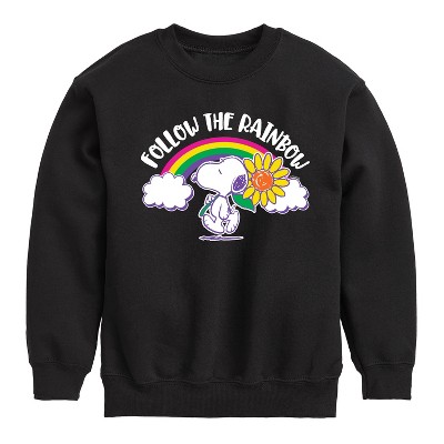 Boys' - Peanuts - Follow The Rainbow Graphic Long Sleeve Fleece Sweatshirt