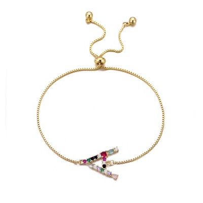 Adornia 14k Gold Plated Multi Color Stone Initial Bolo Bracelet