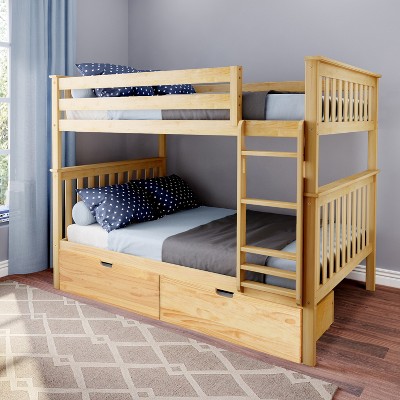 Max & Lily Solid Wood Twin over Twin Bunk Bed with Storage Trundle for Kids