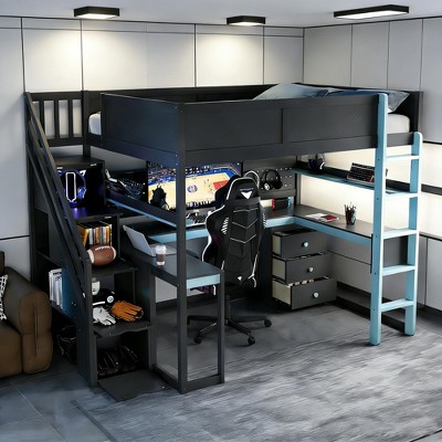- full size loft bed with desk and storage
