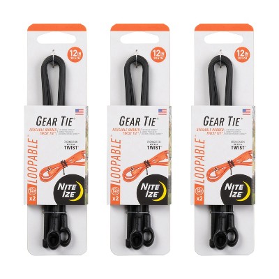 Nite Ize Gear Tie Loopable Twist Tie - Reusable & Flexible - Bendable Cable Ties for Gear & Cords - for Secure Fastening - 18", Black (3 Pack)