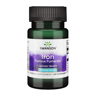 Swanson Iron (Ferrous Fumarate) – Capsules [18 mg, 60 Count]