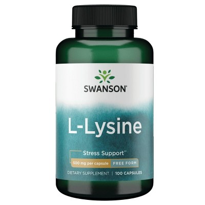 Swanson L-Lysine - Free Form, Supports Nervous System Health, 500 mg (100 Vegan Capsules)
