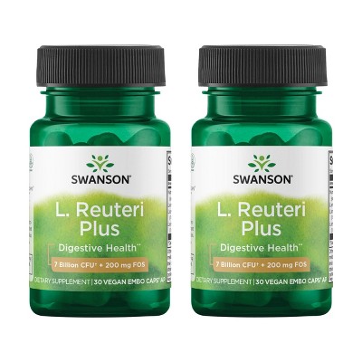 Swanson L. Reuteri Plus with probiotics & FOS for gut health (7 Billion CFU, 30 veggie capsules, 2 pack)