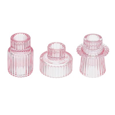Unique Bargains Glass Table Centerpiece Decor Taper Candle Holders 3 Pcs