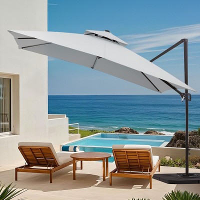 When summer season is near, break out your umbrellas so that you can beat the heat. At Target, you can choose from a wide selection of cantilever umbrellas that will fit your exact requirements. Take your pick from a variety of tilt types like crank, push-button, or push-up umbrellas. These heavy-duty patio umbrellas are great for your outdoor space and are often made of aluminum, are strong and come in different shapes so that you can pick the umbrella that offers the best shade for you. UV-resistant and fade-resistant, cantilever design umbrellas come with weighted bases and strong poles so they will not tip over on your patio. Browse through an extensive range of cantilever patio umbrellas to get ready for the summer!