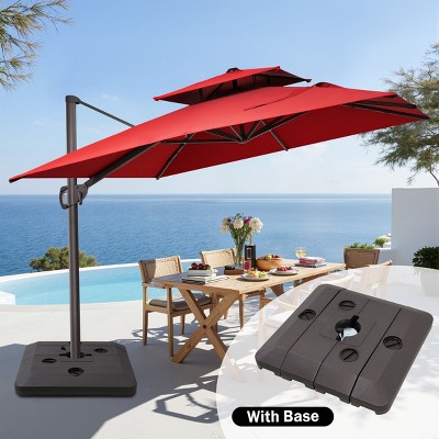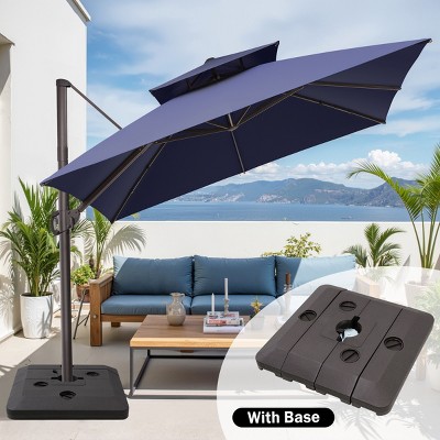 When summer season is near, break out your umbrellas so that you can beat the heat. At Target, you can choose from a wide selection of cantilever umbrellas that will fit your exact requirements. Take your pick from a variety of tilt types like crank, push-button, or push-up umbrellas. These heavy-duty patio umbrellas are great for your outdoor space and are often made of aluminum, are strong and come in different shapes so that you can pick the umbrella that offers the best shade for you. UV-resistant and fade-resistant, cantilever design umbrellas come with weighted bases and strong poles so they will not tip over on your patio. Browse through an extensive range of cantilever patio umbrellas to get ready for the summer!