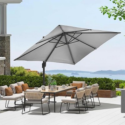 When summer season is near, break out your umbrellas so that you can beat the heat. At Target, you can choose from a wide selection of cantilever umbrellas that will fit your exact requirements. Take your pick from a variety of tilt types like crank, push-button, or push-up umbrellas. These heavy-duty patio umbrellas are great for your outdoor space and are often made of aluminum, are strong and come in different shapes so that you can pick the umbrella that offers the best shade for you. UV-resistant and fade-resistant, cantilever design umbrellas come with weighted bases and strong poles so they will not tip over on your patio. Browse through an extensive range of cantilever patio umbrellas to get ready for the summer!