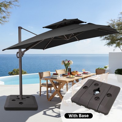 When summer season is near, break out your umbrellas so that you can beat the heat. At Target, you can choose from a wide selection of cantilever umbrellas that will fit your exact requirements. Take your pick from a variety of tilt types like crank, push-button, or push-up umbrellas. These heavy-duty patio umbrellas are great for your outdoor space and are often made of aluminum, are strong and come in different shapes so that you can pick the umbrella that offers the best shade for you. UV-resistant and fade-resistant, cantilever design umbrellas come with weighted bases and strong poles so they will not tip over on your patio. Browse through an extensive range of cantilever patio umbrellas to get ready for the summer!